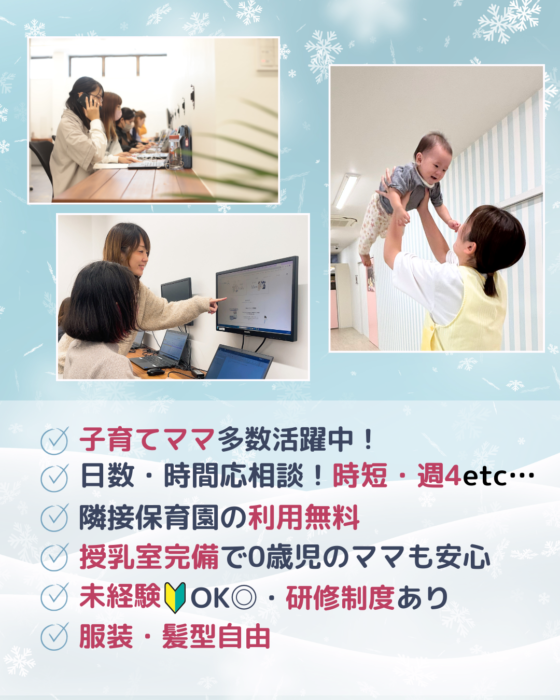 そのため、子育て中のママが多数活躍しているのが特徴です。
