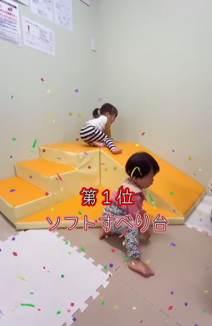 いちばん人気は、ソフトすべり台♡やわらかい素材でできているので、小さな子も安心して遊べます。階段や坂を登ったり、先生と一緒に滑ったりして、雨の日でもしっかり体を動かせますよ◎