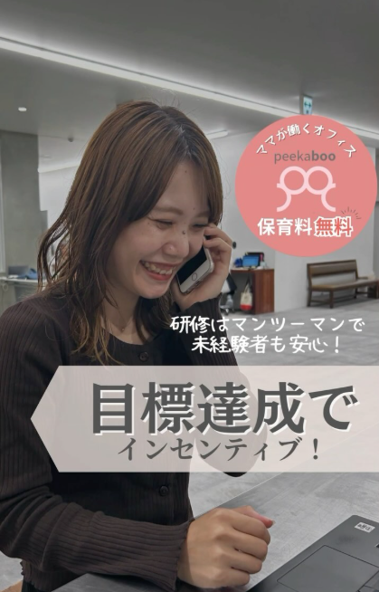 テレアポは未経験で最初は緊張したそうですが、ベテランの先輩によるマンツーマン研修で安心してスタートできたそうです。個人目標達成でインセンティブがもらえるのも大きなモチベーション!peekaboo保育園は、子ども一人ひとりに合わせた丁寧な対応が魅力だと話してくれました。