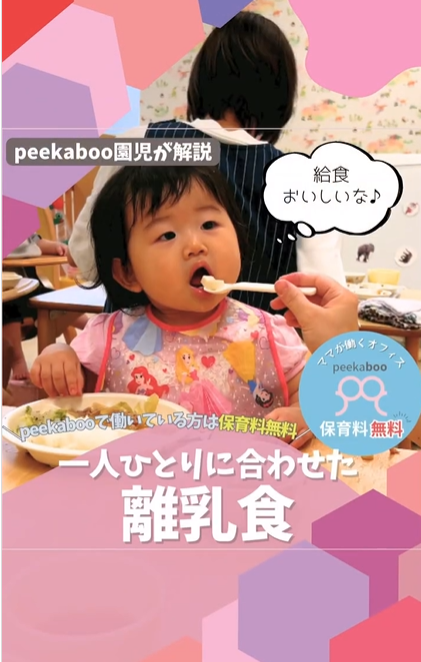 peekabooには、家族との時間を大切にしながら働くママたちがたくさん活躍しています。授乳室完備や一人ひとりに合わせた離乳食など、0歳児のお子さんを預けることに不安を感じるママも安心できる環境が整っています。在宅勤務も可能なので、転居が多い方も安心。ご興味をお持ちの方は、ぜひ会社説明会にご参加ください!