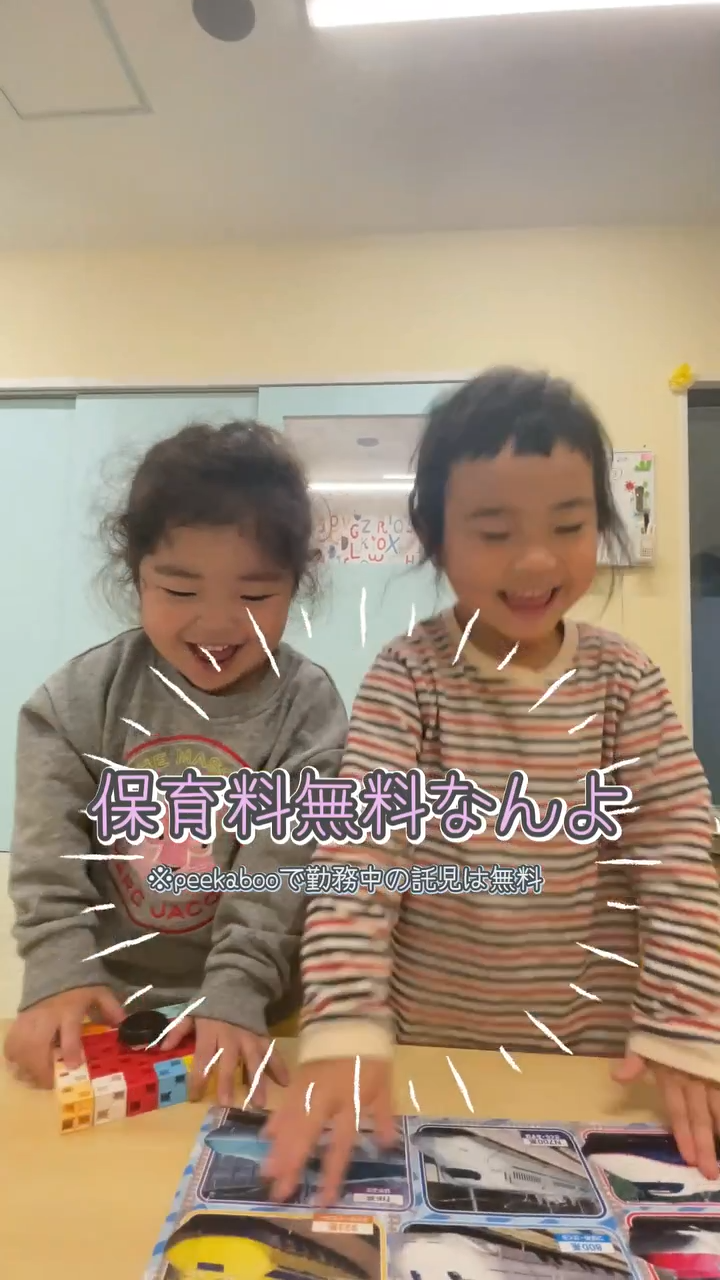 peekaboo保育園は、勤務中の託児は保育料が無料になります。他の園に子どもを預けた場合、0~2歳児は保育料が必要な園がほとんど。体調を崩しやすく、登園日数が少なくなってしまうこの時期だからこそ、保育料無料なのはありがたいですよね♡