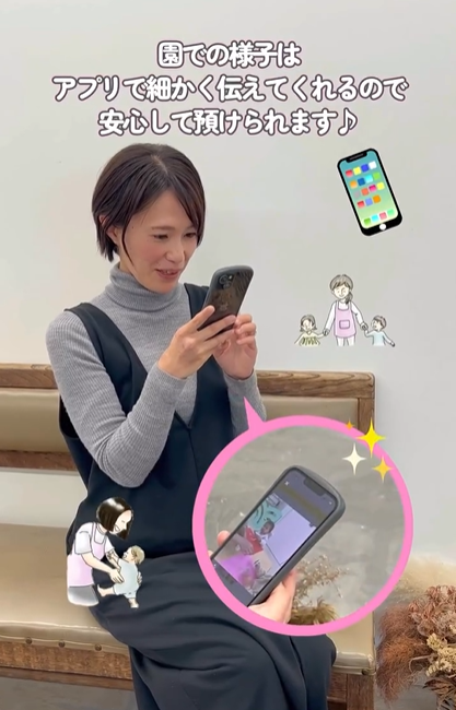子どもを預けながら仕事をしていると、保育園での様子が気になりますよね。peekabooでは連絡アプリを導入しており「文章と写真でその日の子どもの様子や姿を知ることができてうれしかった」と卒園児ママも話します。